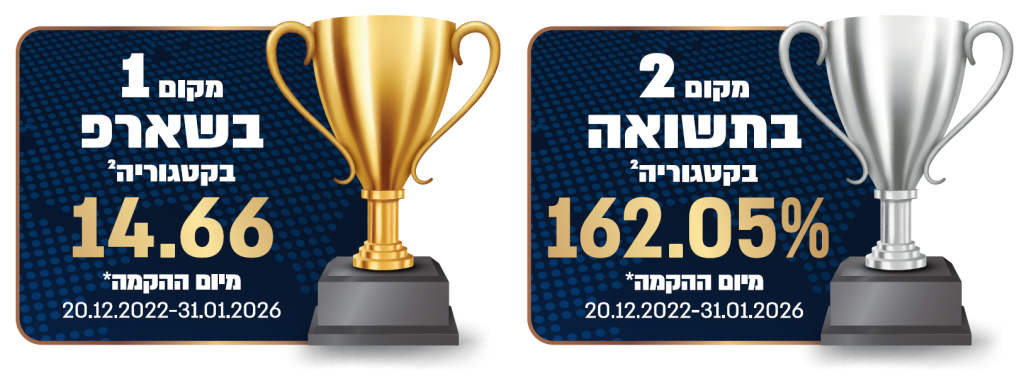מנהל הקרן: איילון קרנות נאמנות בע"מ. מנהל השקעות חיצוני: בסט אלטרנטיב ניהול תיקים בע"מ. *הקרן הונפקה ביום 19.12.22, יובהר כי בהתאם להוראות הרשות לני"ע, היום הראשון לצורך קביעת תחילת של תקופת חישוב התשואה הוא היום לאחר היום שבגינו נרשמו לראשונה יצירות בקרן. **להערכת מנהל ההשקעות החיצוני. 1. 4 – עד 120% חשיפה למניות בערך מוחלט מהשווי הנקי של נכסי הקרן. D – עד 120% חשיפה למט"ח בערך מוחלט מהשווי הנקי של נכסי הקרן. 2. בתאריך 01.07.21 בוצע עדכון רשימת הכותרות המאפיינות לצורך סיווג קרנות. לפי נתוני מערכת פרדיקטה בקטגוריה גמישות מתוך 39 קרנות שפורסמו להן תשואה ושארפ לתקופה זו. 3. אין באמור התחייבות להשגת תשואה כלשהי. פרסום זה אינו מהווה הצעה לרכישת יחידות בקרנות ואינו מהווה תחליף לייעוץ/שיווק השקעות ו/או מס המתחשב בנתונים ובצרכים המיוחדים לכל אדם. רכישת יחידות נעשית בהתאם לתשקיפי הקרנות שבתוקף ולדיווחים המידיים. אין בתשואות ובמיקומי הקרנות בעבר כדי להעיד על תשואות ומיקומים דומים בעתיד.